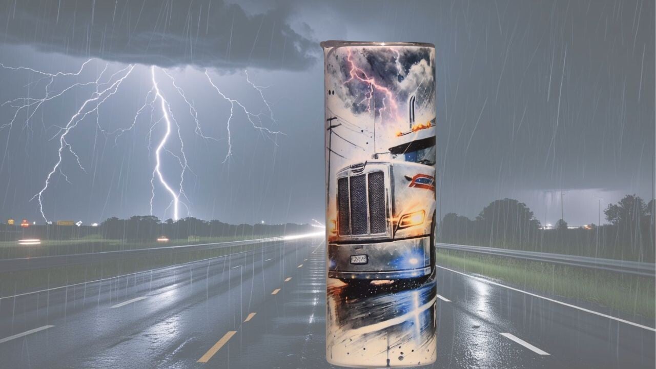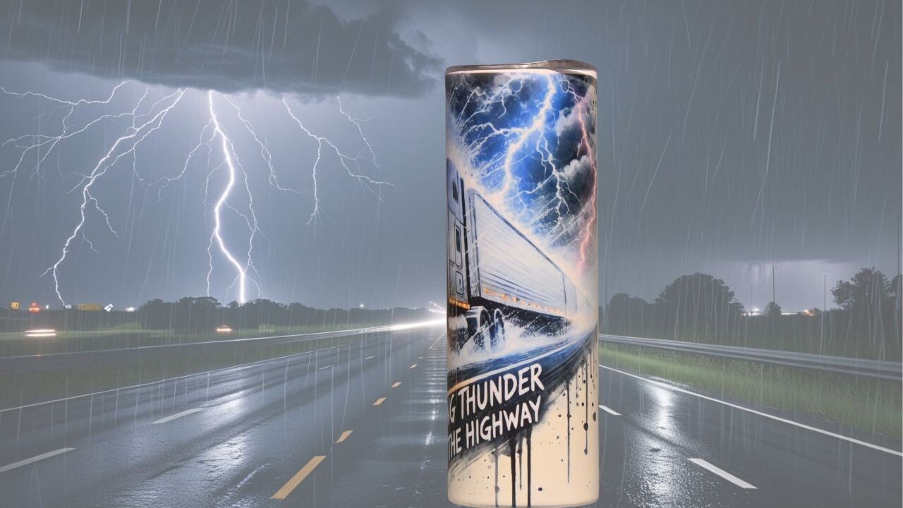 Take on the storm with the Rolling Thunder tumbler! Featuring a powerful semi-truck driving down the highway through a dramatic storm, emblazoned with the phrase “Rolling Thunder On The Highway,” this tumbler is perfect for truckers, road warriors, and anyone who loves the thrill of the open road. Designed to keep drinks hot or cold, it’s a tribute to strength, endurance, and determination.