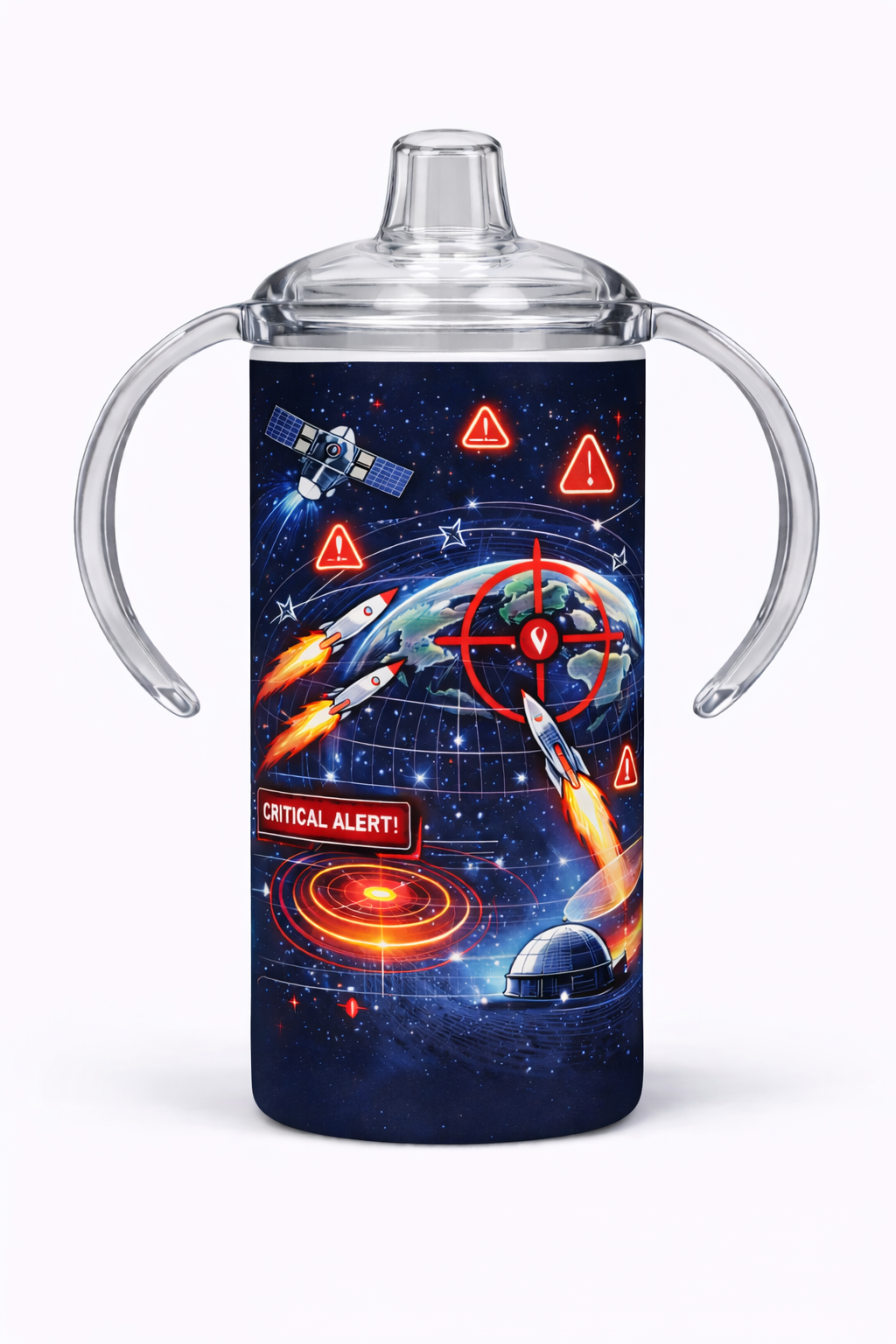 Space Alert Squad is a fun, action-packed sippy cup designed for little explorers who love space, rockets, and adventure. Featuring a colorful, cartoon-style space defense scene with satellites, rockets, and alert symbols, this design sparks imagination while celebrating bravery, protection, and teamwork.