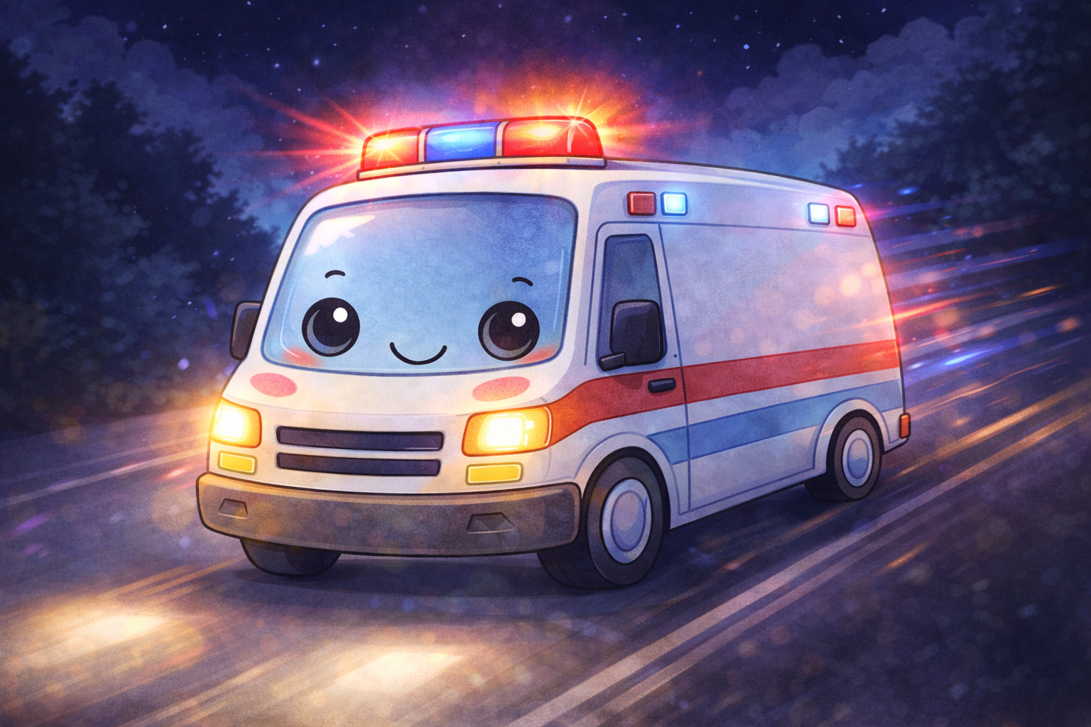 Night Shift Helper was created to bring comfort and calm to little ones, even after the sun goes down. Featuring a friendly cartoon ambulance driving through the night with gentle glowing lights, this design helps children see helpers as brave, kind, and always on the way—no matter the hour.