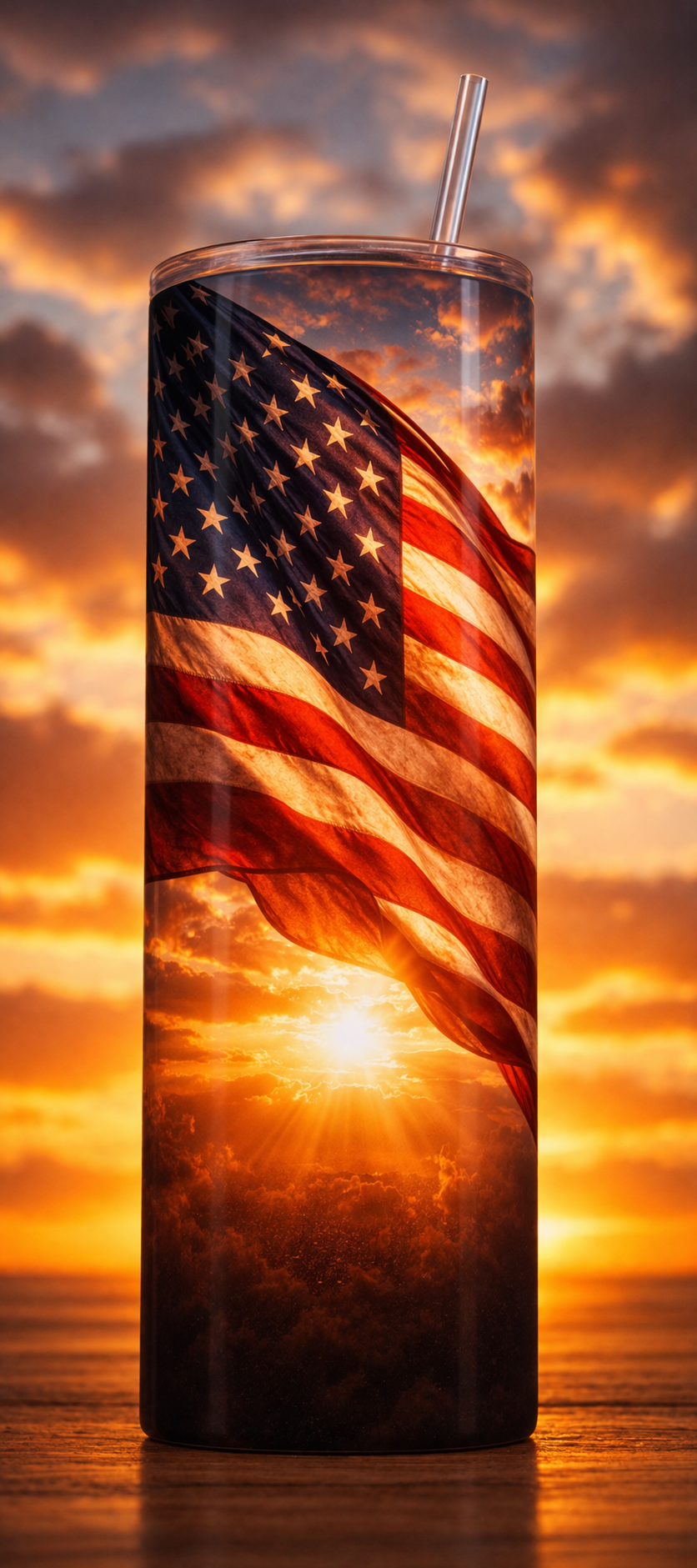 With light breaking across the horizon and reflecting through the flag’s movement, this tumbler represents freedom, hope, and the beauty of a nation built on sacrifice and strength. It’s a quiet reminder of what we stand for—and what has been given to protect it.