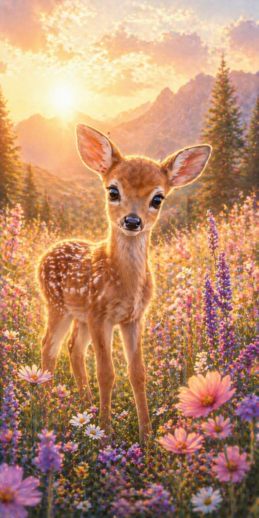 Soft morning light, blooming flowers, and a gentle little fawn… Sunny Blossom Deer captures a peaceful and joyful moment in nature that feels warm, safe, and full of love.
